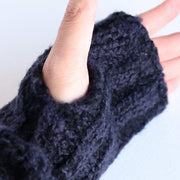 親指を通す穴もあるので、手の甲をしっかり覆い、まるで繭に包まれるような心地よさと温もりを感じることができます。