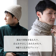 | リバーシブルで8通りの使い方が楽しめるマルチなアイテム。 折り方、かぶり方次第で無限にアレンジが可能です。 |