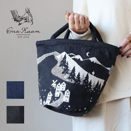 【2色】ENA KUAM (エナクアム) 雪山 デニム 手抜染 バッグ [25AKU203] ...
