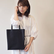 ブランドショップバッグのような雰囲気の、上品なブラック。紙バッグのようにとても薄くてしなやか。軽いのでお買い物や通勤バッグにおススメです。