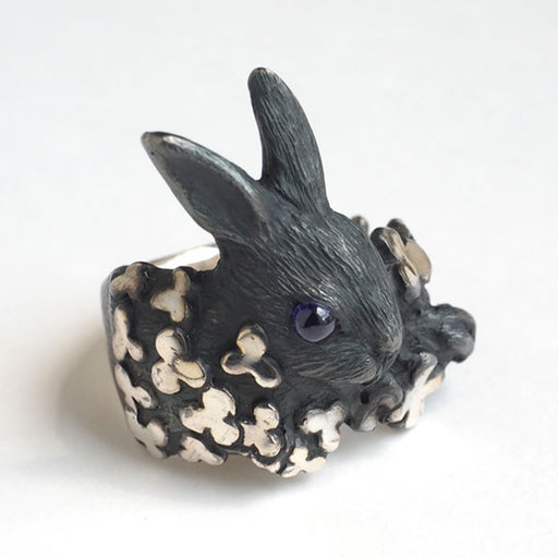 DECOvienya(デコヴィーニャ)DECOvienya(デコヴィーニャ) 手作りアクセサリー ウサギとクローバーリング ブラック [DE-001B] つぶらな瞳をした、かわいいウサギ。ふわふわの温かそうな毛をまとったヒツジ。森の中で暮らすシマリスやモモンガ、人家でしたたかに生きるネズミ。小動物や身近な家畜たちが、“...