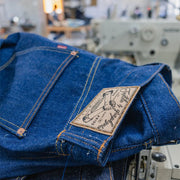 ポケットスレーキとバックポケットの当て布はオリジナル矢羽根デニムを贅沢に使用しています。