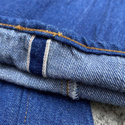 40年代頃の淡い色合いが特徴的なインディゴ色を再現しています。 ゆっくりと時間をかけて織り上げたオレンジ耳のセルビッチデニムです。