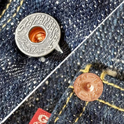 ドーナツボタンやリベットも全てオリジナル小さなこだわりが光ります。