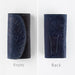 その後、花柄の型押しを入れています。 使い込むほどに艶が増し、深い藍色に経年変化していきます。