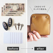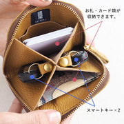 ![]() 鍵を入れる膨らみを生みながら、表面が凸凹しない構造を 何度も試行錯誤した結果、革の幅を両サイド5mmずつ広げることに。 外側の一枚革の半分だけ、両サイドをナナメに裁断。 これを経験値で実現できるのは、長年の職人技。 ![]() 穴の位置が低くても、革紐が長くても、スマートキーがこぼれ落ちてしまいます。 ミリ単位で調整を重ねて、今の「高さ」と「長さ」に辿り着きました。 ![]() 3本の指でスマートキーを持って人差し指を伸ばせば、 丁度スナップボタンに引っ掛けることができ、ほんの1秒で取り外しができます。 ディーラーで車を預ける時など、スマートキーだけを取り外したいシーンで役立ちます。 鍵の付け替えも、面倒さを感じません。 ![]() 電磁波が強いコインパーキングなど、スマートキーを取り出さないと反応しないような 場所でも、ファスナーを少し開ければすぐに取り出してボタンを押すことができます。 ![]() 縫製コストを極限まで抑え、使う革の量も減っています。 「良いもの」だからこそ、多くの方に使っていただける価格を目指されています。 ファスナーはYKK製で開閉もスムーズに。職人歴30年の熟練技による組立て技術と 美しい縫製が生み出す安心感と堅牢度。 ![]() 伝統的な技法で一つ一つ丁寧に作られた貼り箱に入れてお届けします。 こちらは、明治7年創業、京都・老舗の箱屋さんに別注されたもの。 新生活や記念日などの、プレゼントにもオススメです。