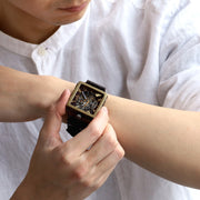 KINO(キノ) 手作り腕時計 自動巻き 裏スケルトン メカニックブラックスクエア ブラック [K-19-MBK-BK]
