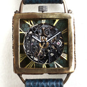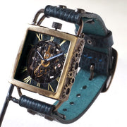 KINO(キノ) 手作り腕時計 自動巻き 裏スケルトン メカニックブラックスクエア ブルー [K-19-MBK-BL]