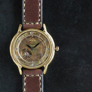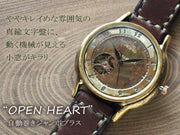 渡辺工房 手作り腕時計 自動巻き 裏スケルトン ジャンボブラス “オープンハート” アラビア数字 手縫いベルト [NW-BAM060-T]