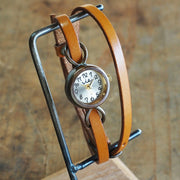| 手書き風の可愛い文字盤と、細めの2重ベルトが女性らしい印象の手作り腕時計です。ベルト幅は約5mmと細く、華奢な女性の腕を魅力的に彩ってくれます。 普段使いしやすいシンプルなデザインで、時計本体の取り外しも可能です。ベルトのみで、ブレスレットとしてもお使いいただけます。 |