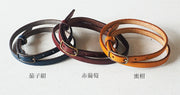 | ベルトは全15色からお好きなカラーをお選びいただけます。 艶感がある定番カラーの「黒、茶、赤、ヌメ、蜜柑、赤葡萄、茄子紺」はベーシックに。その他のカラーは、マットな質感の鮮やかなカラーバリエーションです。 気分やコーディネートに合わせてベルトを付け替えたり、ベルトのみでブレスレットとして楽しんでいただくのもおすすめです。 |