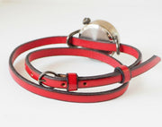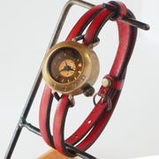 2重ベルトに、ころんと小さなケースがかわいい印象のレディース手作り腕時計です。
