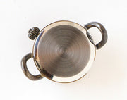 アンティークで古風なイメージの真鍮ケースに、4粒のキュービックジルコニアを大胆にあしらったデザイン。3時位置から6時位置にかけて、さりげなく配置されているのが粋な魅力となっています。