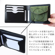 This bi-fold wallet is made of Pueblo leather, allowing you to see the changes that occur in the leather over time, and comes with a gimmick that allows the coin case to be removed.