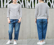 Kojima was a town famous for its cotton cultivation and cotton industry during the Edo period, and is now one of Japan's leading textile manufacturing towns, producing jeans and other products. This town has everything you need to make jeans, including high-quality fabrics, durable sewing, and advanced fabric processing techniques. "DEEP BLUE" also produces basic, reasonably priced tops that go well with jeans made in an ideal manufacturing environment.