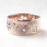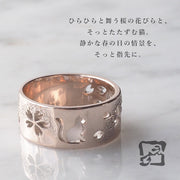 This ring features a design of cherry blossoms and cats, evoking the image of a calm spring day. The openwork carving of misty cherry blossoms gives it a subtle Japanese feel.