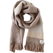 This muffler is randomly woven with four attractive weaving patterns: herringbone, waffle, schuss, and nanako weave.