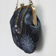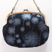 A gamaguchi bag with a very impressive fluff pattern printed on a smooth cotton fabric.