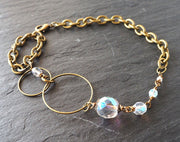 The beige and black leather strap is adjustable from 105cm to 130cm in length. The brass chain strap is 120cm long and not adjustable.