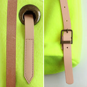 The neon yellow and natural beige genuine leather add a touch of casualness. The subtle color combination brings the whole bag together in a gentle way.