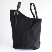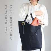 Basic and easy to use, all black. The casual texture of the canvas and the high-quality atmosphere of the genuine leather of the handle are just the right balance. The antique metal fittings are not overly decorated, giving a mature and sophisticated impression.