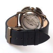 The back is fully skeletonized, allowing you to see the movement of the automatic winding rotor.