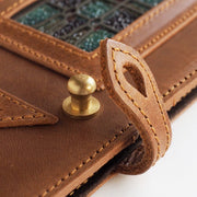 The "glart" series combines stained-glass style tempered glass with genuine leather. Glart is a coined word combining glass and art.