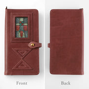 The "glart" series combines stained-glass style tempered glass with genuine leather. Glart is a coined word combining glass and art.