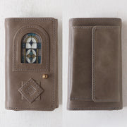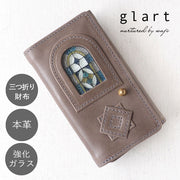 glart Stained Glass Antique Door Trifold Wallet, Light Gray, Women's [H0212-LGY], Real Glass, Genuine Leather, Leather Wallet, Leather Accessories, Brand Name Trifold Wallet, Compact Mini Wallet, Leather