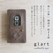 This product is part of the "glart" series, which combines stained-glass-style tempered glass with leather. "Glart" is a coined word that combines glass and art.