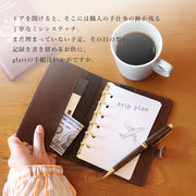 glart M6 Stained Glass Antique Door Sepia System Organizer Cover [H0221-SEPIA] Real Glass, Genuine Leather, Leather Wallet, Leather Accessories, Brand Name, Mini 6-Hole