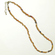 | A short necklace made of wood beads dyed with vegetable dyes. Distorted and gentle wood beads of different sizes and shapes are randomly connected, and colors such as red, blue, yellow, green, and violet are expressed by mixing beads of different colors as accents. *Please note that the color scheme is entirely up to the artist. |