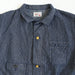 A work coat made of diagonally woven denim that gives off a sashiko-like appearance.