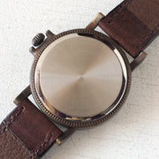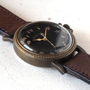 | The color is a simple dial with black and ivory. The black part is painted without numbers. Not a printed dial. For a more vintage look, the needles are dyed to look burnt and have an atmosphere. And the solid brass case is cool. A coin edge is used for the round edge, and the cool point is that it reminds us of jagged British coins and manholes. |