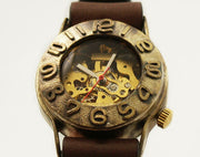 Watanabe Kobo Handmade Wristwatch Manual Winding Back Skeleton 3D Bezel Men's Brass [NW-BHW014]