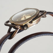 The brass case with an oxidized finish gives it an old-fashioned feel.The square-shaped case is oxidized, giving it a solid finish that has been aged. The thin double belt has just the right amount of quality, and you can enjoy both the antique feel and the feminine atmosphere.