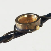 | A handmade watch with an antique brass case and a thin double belt that gives a feminine impression. The width of the belt is about 5mm, which makes it attractive for delicate women's arms. The dial has an antique finish that makes it look like it has been used, giving it a nostalgic atmosphere. The thin double belt has just the right amount of quality, and you can enjoy both the antique feel and the feminine atmosphere. |
