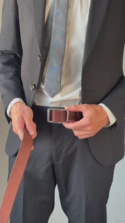 The vintage-looking oiled leather goes particularly well with jeans and work pants. Just as worn-in denim becomes more comfortable, this belt also becomes more unique and personal the more you use it.