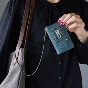 glart Pass Case, Stained Glass Antique Door, Navy Blue, Women's [H0213-NB]