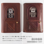 glart Stained Glass Antique Door Business Card Holder, Sepia, Women's [H0218-SP], Real Glass, Genuine Leather, Leather Accessories, Brand: waji, Card, Business Card Case