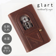 The "glart" series combines stained-glass-style tempered glass with genuine leather. "Glart" is a coined word combining "glass" and "art."