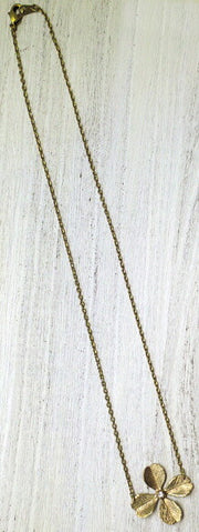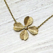 A simple necklace with a brass four-leaf clover motif. It is almost the same size as the real thing and has a cute look, with a subtle sparkle in the middle of the clover for a mature look. The chain is short at 38cm, so you can wear it casually and compactly. |