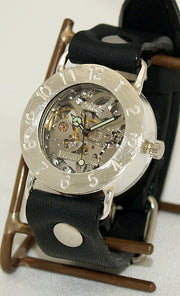 Watanabe Kobo Handmade Wristwatch Manual Winding Type Back Skeleton Jumbo Silver [NW-SHW042]