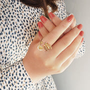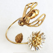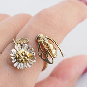 | A bee and chrysanthemum ring that gently hugs your finger |