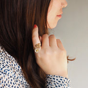 A small bee is attracted by the scent of the lovely chrysanthemums... Introducing this adorable ring with a tranquil atmosphere.