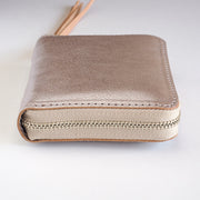 A silver leather wallet that takes on a unique look the more you use it.