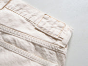 Ankle-length colored denim with a rough texture that is boyish. By reducing the number of weft threads, the material is soft and easy to wear. The unevenness of the warp threads and the number of weft threads are well balanced to bring out the unevenness of the surface of the fabric and create a vintage feel.