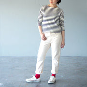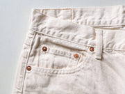 The ankle length and narrow hem give it a neat impression. Roll up the hem to reveal your ankles for a lighter look. It goes well with sports sandals and sneakers, making it a perfect item for those who like casual styles! You can also enjoy a different style by pairing it with mannish leather shoes or pumps. The front is easy to wear with a zipper fly, and the simple back style is the same as the classic 5-pocket denim. Selvedge sewn with red thread is a nice accent when rolled up.