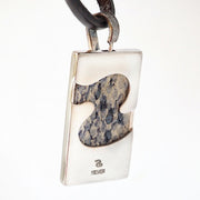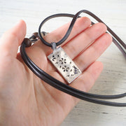 A casual necklace with a rectangular pendant top combined with Italian lace leather.