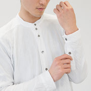 [All 29 colors] Gauze Clothing Studio Garage Double Gauze Henley Neck Shirt Long Sleeve Black Shell Button Men's [TS-95]